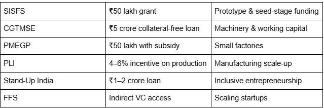 A manufacturing startup may combine multiple schemes to maximize support.